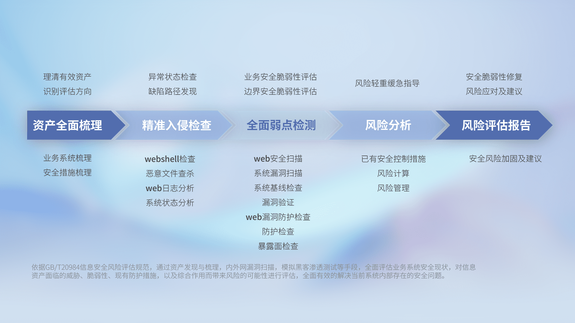 针对客户行业特性,,,,以专业的安全服务+多厂商联合解决方案提供专属的一站式安全管理服务,,,帮助客户全面感知网络空间威胁,,基于识别、、检测、、、分析、、、防护、、、、监测、、、响应的服务理论模型,,,,从方案咨询、、、集成交付、、、、评估验证、、优化加固、、运维运营,,,,致力于为客户提供完整的闭环管理式安全服务。。以实战经验为客户打造高抵御风险的安全体系,,帮助客户发现威胁、、、对抗威胁、、处置威胁,,,不断积累安全对抗能力,,持续保障数字化安全。。。